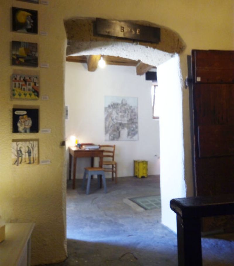 In Corona times the showcase of the closed cinema in the Piazza of Pitigliano is the safest way to exhibit, so we continue with the smallest exhibition (see below). But not immediately, the painting is hidden behind a scaffolding, just inaccessible.
